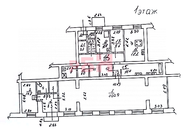 - Общая площадь 317 кв. м: торговый зал - 117 кв. м, служебные помещения на первом этаже - 100 кв. м, служебные помещения в подвале - 100 кв. м.