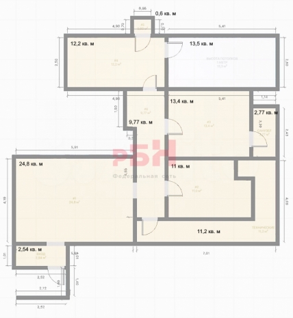 - Помещение общей площадью 97,4 кв. м. Дополнительно в подарок кладовая площадью 13,5 кв. м.
