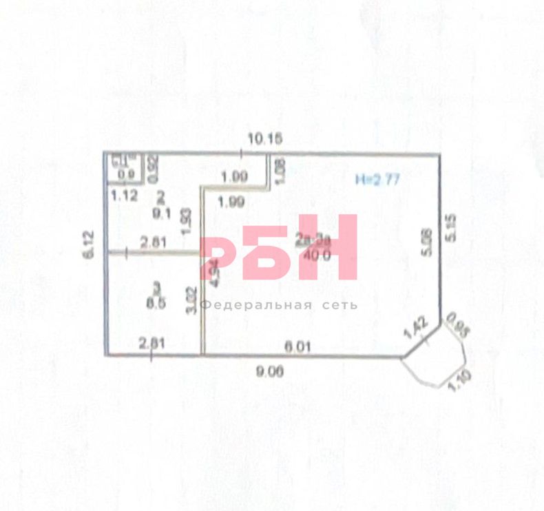 - Высота потолков: 2,77 м