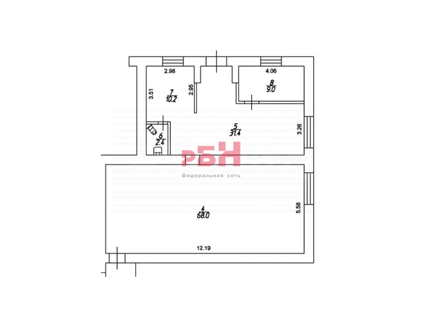 Общая площадь 121 кв.м, отдельный вход. Все коммуникации центральные.